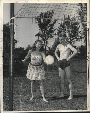 1944 Press Photo Joan Richter & Wendell Johnson-volleyball at servicemen's party
