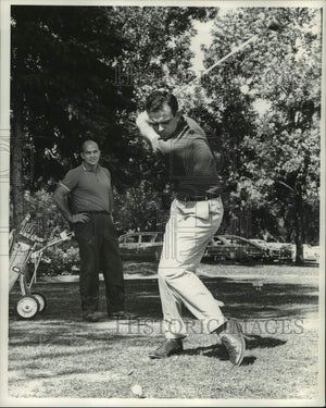 1961 Press Photo Golfer Prepares to Tee Off on Ball - mjc36077