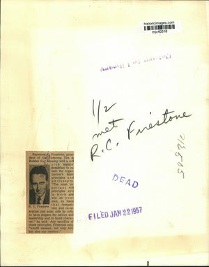 1957 Press Photo Raymond C. Firestone, The Firestone Tire & Rubber Co. president