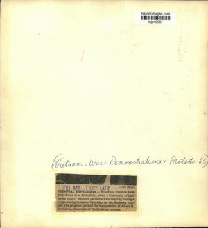 Personal expression - Academic freedom took precedence over formalities when a University of California faculty member carried a Vietcong flag during a ceremonial procession Thursday on the Berkeley campus. The program marked the inauguration of Albert H. Bowker as chancellor of the Berkeley campus. Vietnam- War-Demonstrations and Protests - United States.
