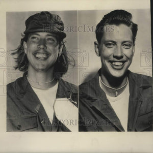 1953 Press Photo Wayne Johnson before & after haircut at Freedom Village, Korea