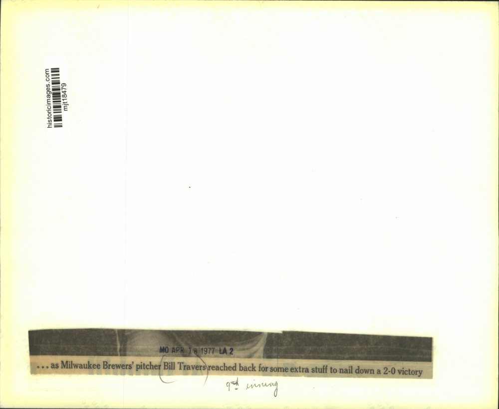 ...as Milwaukee Brewers' pitcher Bill Travers reached back for some extra stuff to nail down a 2-0 victory. (9th inning)