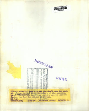 1974 Press Photo Enver Hoxha, Secretary of Albanian Labor Party, May Day parade