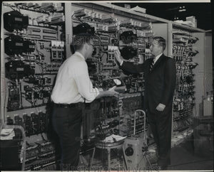 Cutler-Hammer, Incorporated, which manufactures a wide range of electrical equipment for industrial automation, is assembling this control panel for an electric arc furnace in an Ohio metal producing company. Checking assembly progress at Cutler-Hammers' North 30 street plant are Ronald K. Cotton of 3062 North 39th street, left, project engineer, and Carl W. Ludvigsen of 1445 North Victoria circle, Elm Grove, manager of systems control sales. The panel will control positioning of the electrodes in the furnace's melting operations.