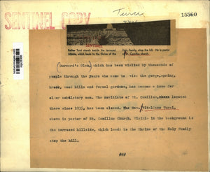 Durward's Glen, which has been visited by thousands of people through the years who came to view the gorge, spring, brook, wood hills and formal gardens, has become a home for elder ambulatory men. The novitiate of St. Camillus, located there since 1935, has been closed. The Reverend Vitaliano Turci, above is pastor of St. Camillus Church. Visible in the background is the terraced hillside, which leads to the Shrine of the Holy Family atop the hill.