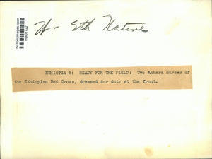 Two Amhara nurses of the Ethiopian Red Cross, dressed for duty at the front.