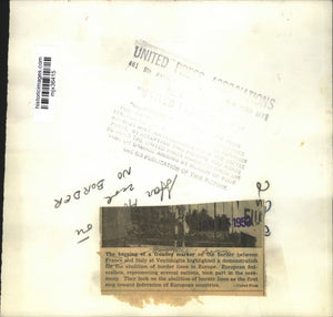 The burning of a frontier marker on the border between France and Italy at Ventimiglia highlighted a demonstration for the abolition of border lines in Europe. European federalists, representing several nations, took part in the ceremony. They look on the abolition of border lines at the first step toward federation of European countries.