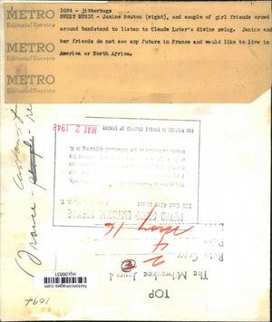 1948 Press Photo Janine Bouton and friends listen to Claude Luter's band, France