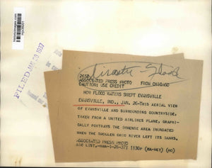 How flood waters swept Evansville Evansville, Indiana, January 26 - This aerial view of Evansville and surrounding countryside, taken from a United Airlines plane, graphically portrays the immense area inundated when the swollen Ohio River left its banks. Disasters - Floods