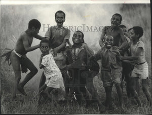 1976 Press Photo Papua New Guinea children enjoy rough and tumble game of soccer