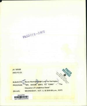 (Pat Harrington) Monte Markham (right) and Pat Harrington, "Mr. Deeds Goes to Town" - "The Education of Longfellow Deeds", Wednesday, October 3, (8:30-9:00 p.m., EDT)