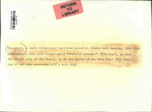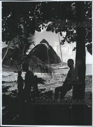 Saint Lucia, a newly independent Caribbean paradise, boasts soft beaches, 2000-foot mountains, a lush rain forest and a "drive-in volcano." This beach, at Anse des Pitons (Bay of the Peaks), is in the shadow of the Gros Piton (Fat Piton), one of two twin mountains half a mile high.