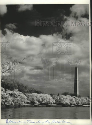 1962 Press Photo Cherry trees along Tidal Basin near Washington Monument.