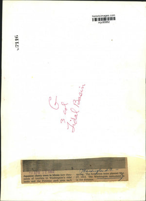 Japanese cherry trees in bloom lure thousands of tourists to Washington's Tidal Basin and the Potomac park area each spring. The first trees were planted March 27,1912. The Washington Monument is in the distance. Washington, D.C.-Washington Monument-Tidal Basin