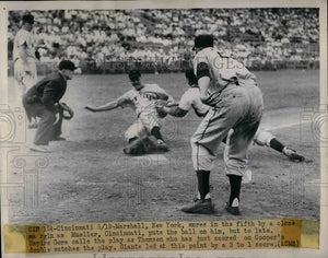 1948 Press Photo N,Y, Giants scores by close margin as Cincinnati put the ball.