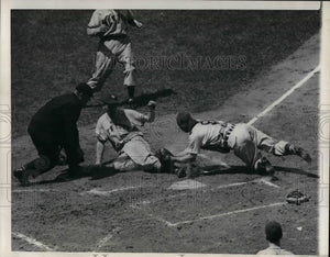1946 Press Photo Clyde McCullough of Chicago Cubs, Buddy Kerr of New York Giants