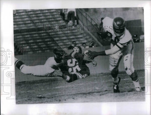 1962 Press Photo Clarence Peaks Fullback Eagles Eludes Cliff Livingston Vikings