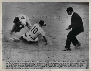 1951 Press Photo A's Elmer Valo out at 2nd vs Yankees Gerry Coleman - nea24246
