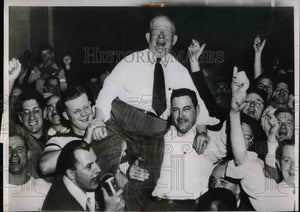 1950 Press Photo Phil Conahan IUE-CIO local president carried over the shoulders