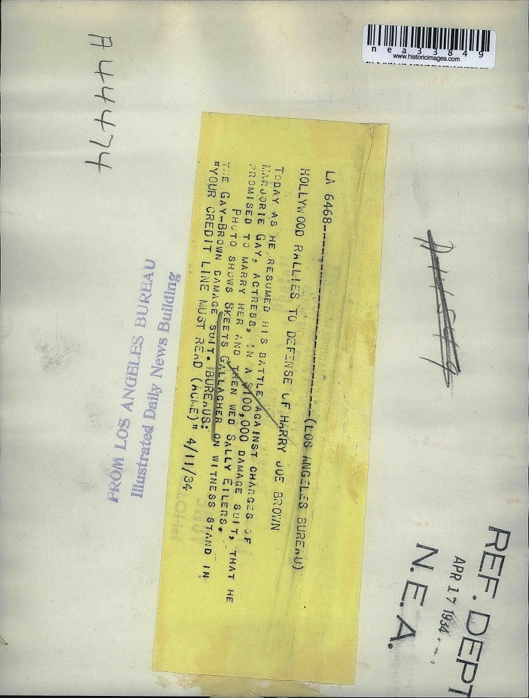 1934 Press Photo Skeet Gallagher Testifies Maternity Suit Against Marjorie Gay