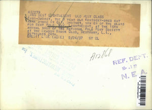 1937 Press Photo Polo pony, "Fuss Budget" at Natl pony society show in NY