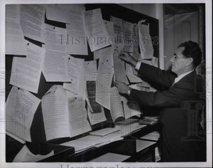 1955 Press Photo Bulletin Board where Bill Notices Are Hung - nea71099