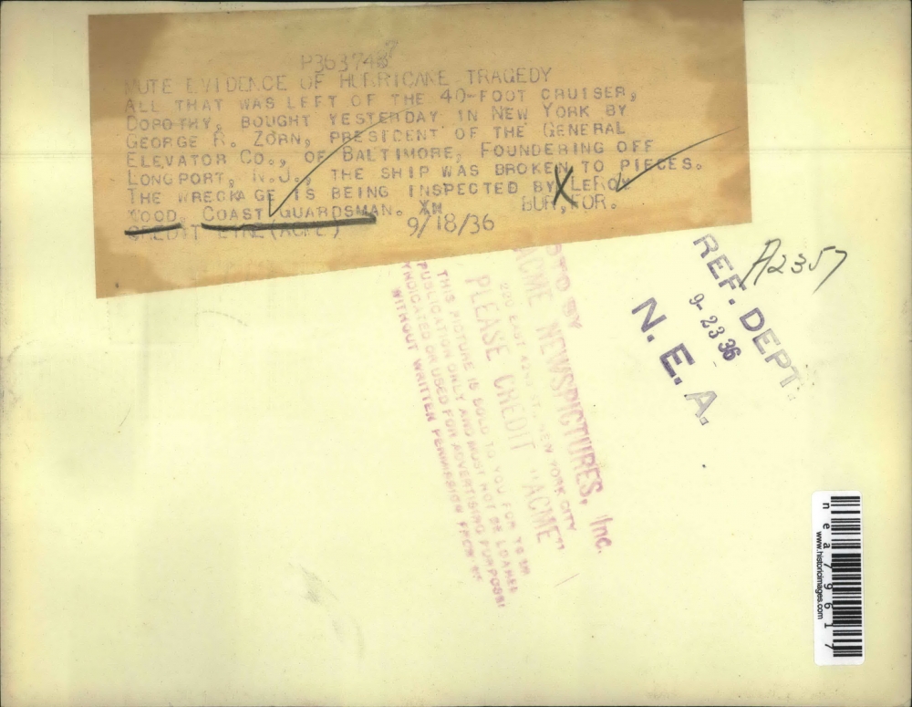 1936 Press Photo LeToy Wood, Coast Guard, inspects damaged cruiser "Dorothy"