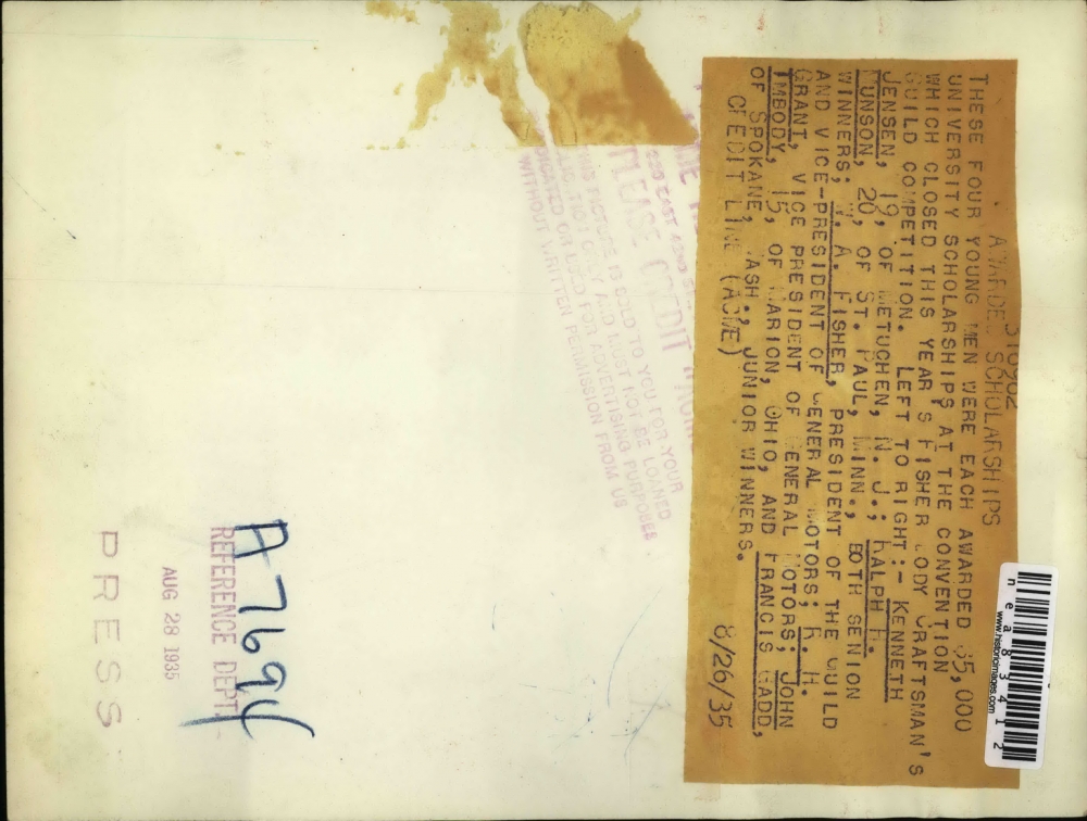 1935 Press Photo Scholarship winners, Jensen, Munson, Fisher, Grant,Imbody,Gadd