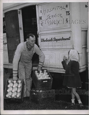 1947 Press Photo Joseph Starweather & Marlene Nichols During Milk Delivery