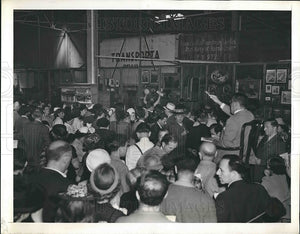 1941 Press Photo Auctioneer Harry Loree Calls Bids as His Assistant Holds Items