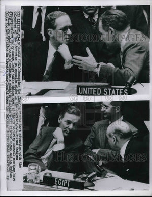 1956 Press Photo Un discusses Middle East situation, Henry C Lodge,, Sir P Dixon