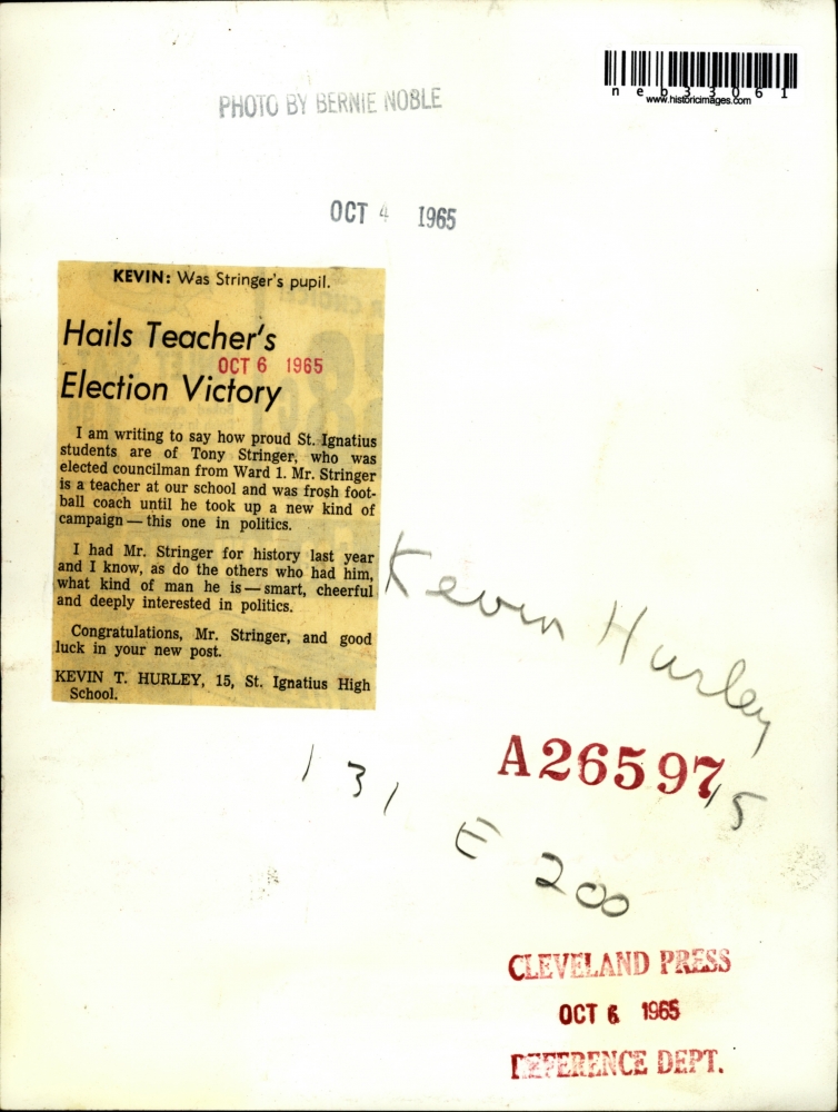 Tony Stringer Elected 1st Ward Councilman Credit - Cleveland Press Photo measures 7 x 9.25 inches.
