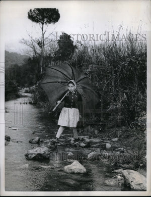 1958 Press Photo Marisa Leonza Wades Across Chioma Stream In Italy - neb35461