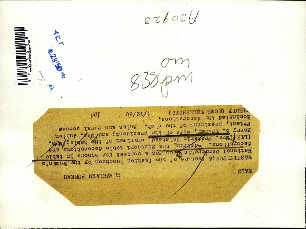 1950 Press Photo Womens National Democratic Club Mrs Harry S Truman wife of Pres