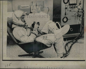 1965 Press Photo Astronaut John Young relaxes during pre flight walkthrough
