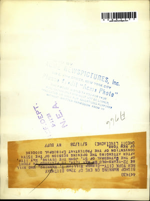 1938 Press Photo Bishop William T Manning Cathedral of St John the Divine NYC