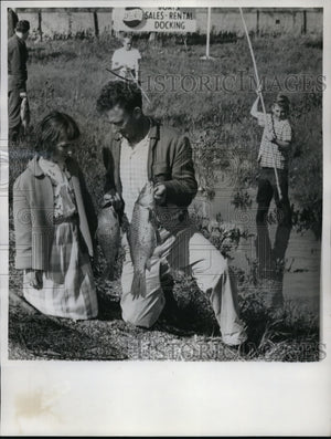 1961 Press Photo Paul Kennison, daughter Frances fishing at West Alton Mo