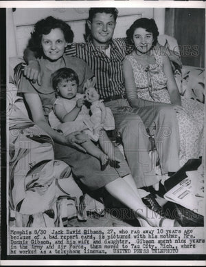1956 Press Photo Jack David Gibson, mother Mrs. Donnie Gibson, wife, daughter