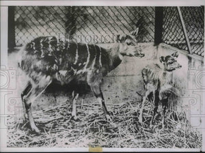1937 Press Photo Baby Marsh Buck with its mother, London Zoo