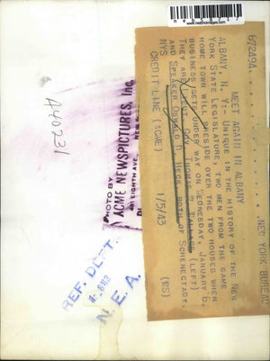 Credit - ACME and NEA Both Of Schenectady, NY First Time Men From Same Town Preside Over Both Sides Of New York State Legislature