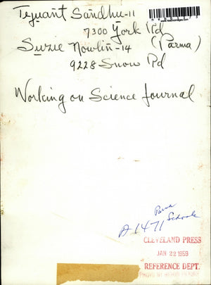 1959 Press Photo Tejuant Sandhu and Suzie Nowlin Working on Science Journal