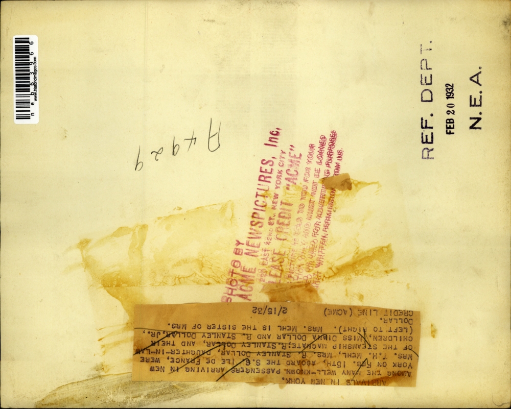 1932 Press Photo Passengers Mrs TH Mehl & Mr & Mrs R Stanley Dollar & Family