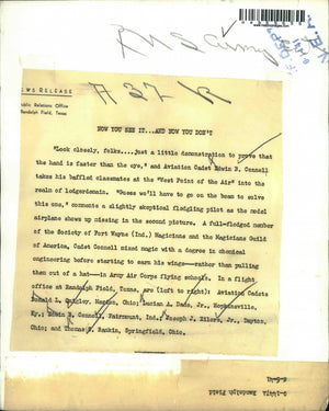 1941 Press Photo Aviation Cadet B Connell shows magic to his classmates