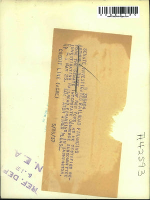 Arthur Burke testifies before Senate Interstate Commerce Subcommittee investigating railroad financing.