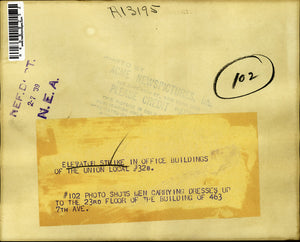 Men carry dresses up to 23rd floor of 463 7th Ave during elevator strike.