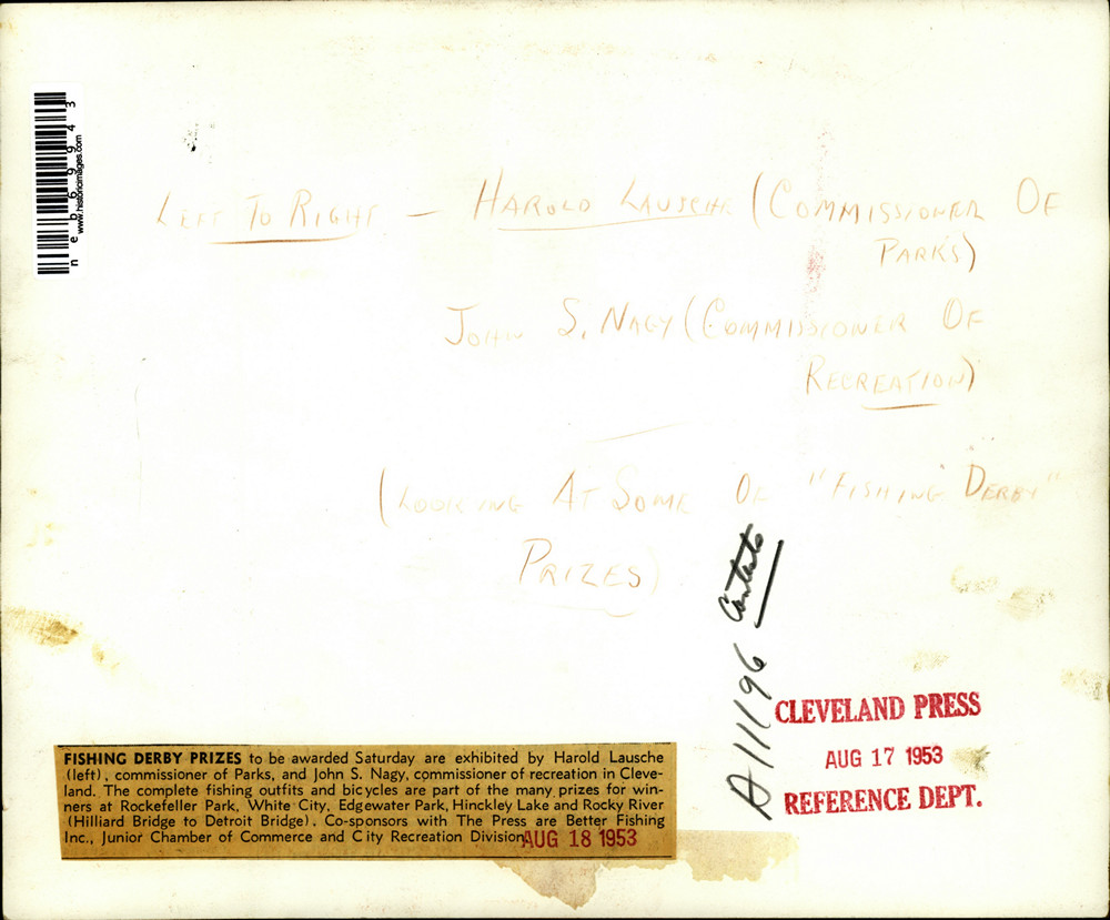 1953 Press Photo Harold Lausche & John Nagy To Award Prizes For Winning