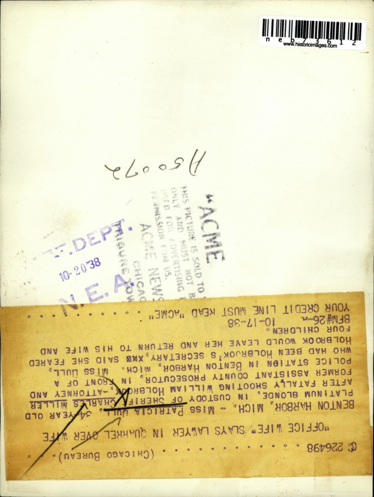 1938 Press Photo Patricia in Custody Sheriff Charles Miller Shot William Holbroo