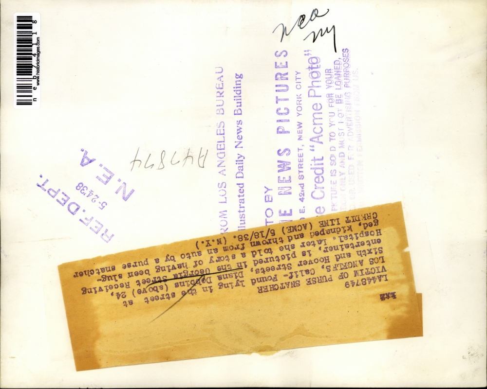 1938 Press Photo Diana Dobbins Victim of Purse Snatcher