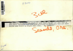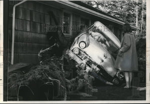 1964 Press Photo Tidal Wave Swept Log and Car Into Paul Creal Home in Seaside