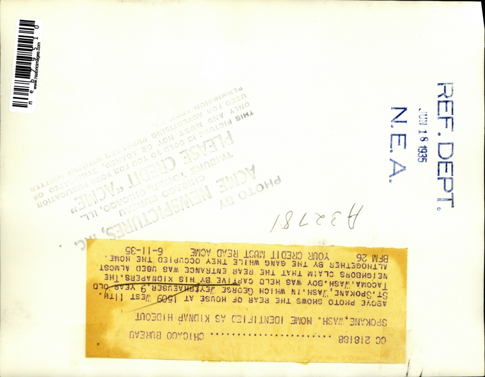 1935 Press Photo Spokane, Wash site where kidnapped Weyerhaeuser was held